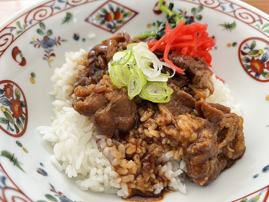 | 10:32 横尾 | 昼食:焼肉丼 | 甘辛い肉が絶品 |