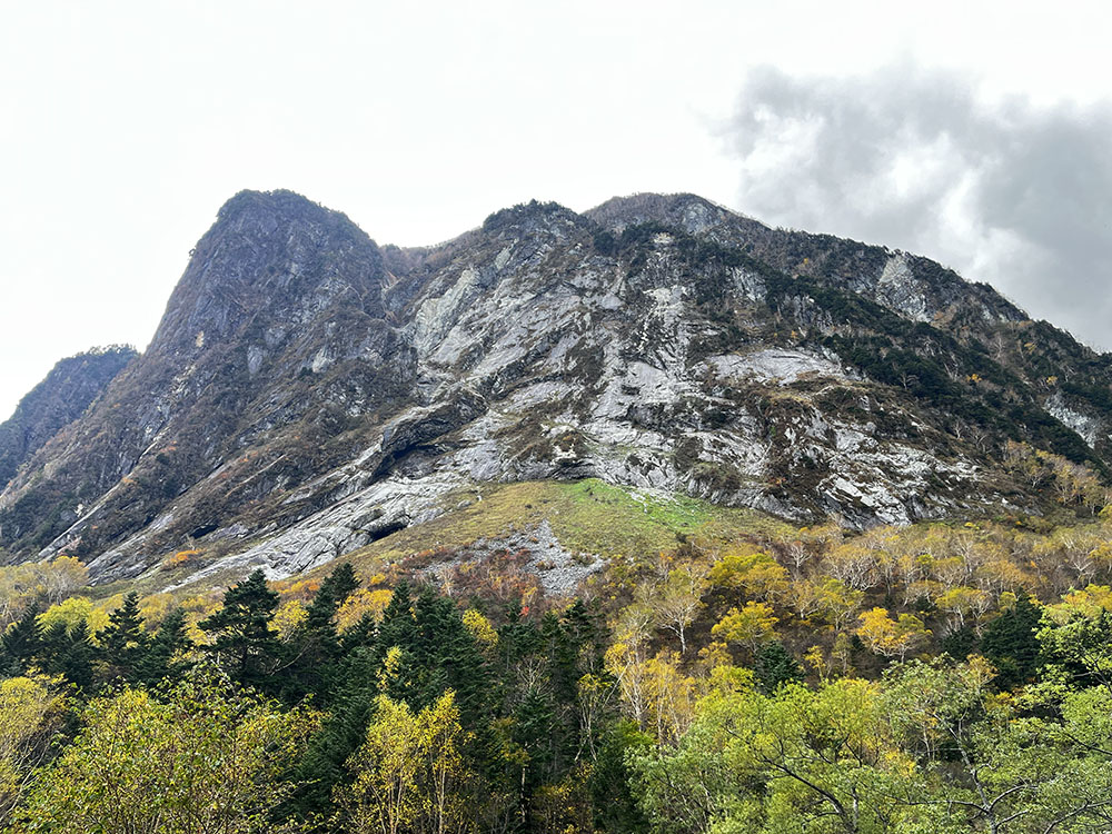 林道をしばらく歩くと、左手に圧倒的な岩の壁が現れた。屏風の頭(びょうぶのあたま)だ。の垂直な岩肌は、ただそこに在るだけで登山者を圧倒する。自然の造形の前では、人間など本当に小な存在に過ぎない。僕はその威容を横目に見つつ、黙々と足を運んだ。