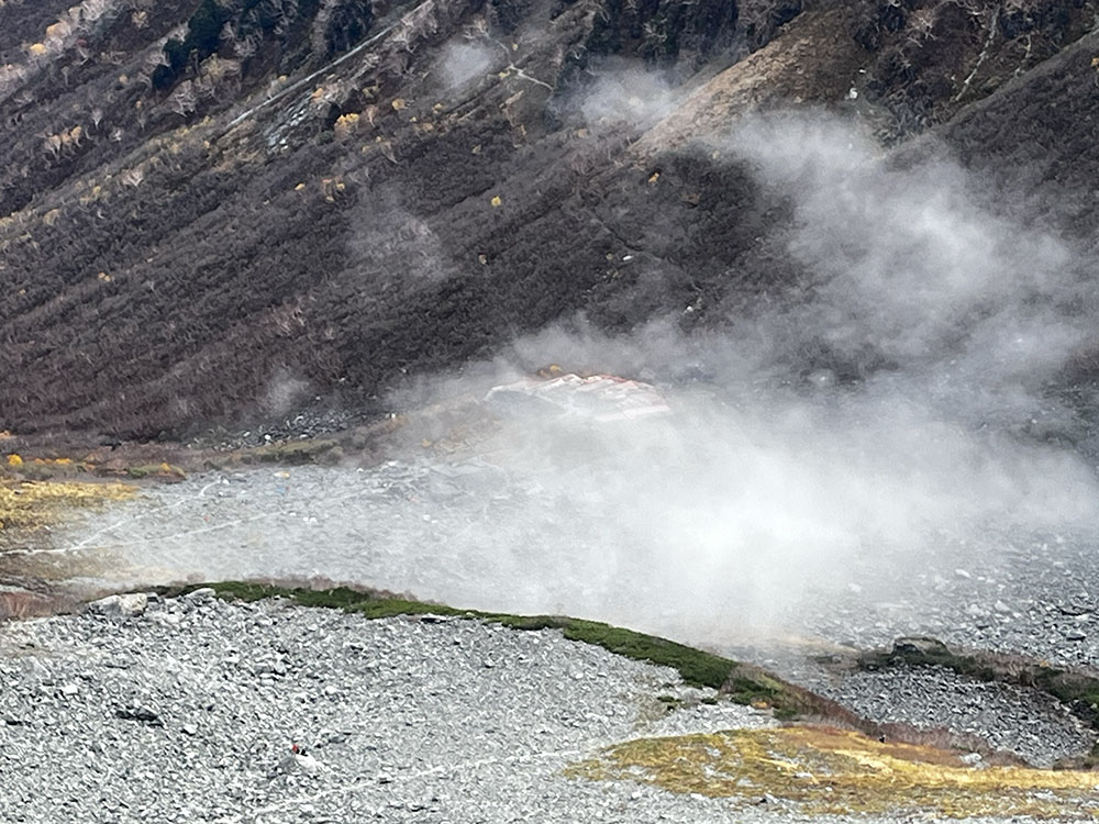 眼下には、山荘の赤い屋根が小さく見えてきた。あそこまで下れば、ひとまずの安堵が待っている。浮き石に足を掬われないよう、慎重に、けれど確実な足取りで降りる。