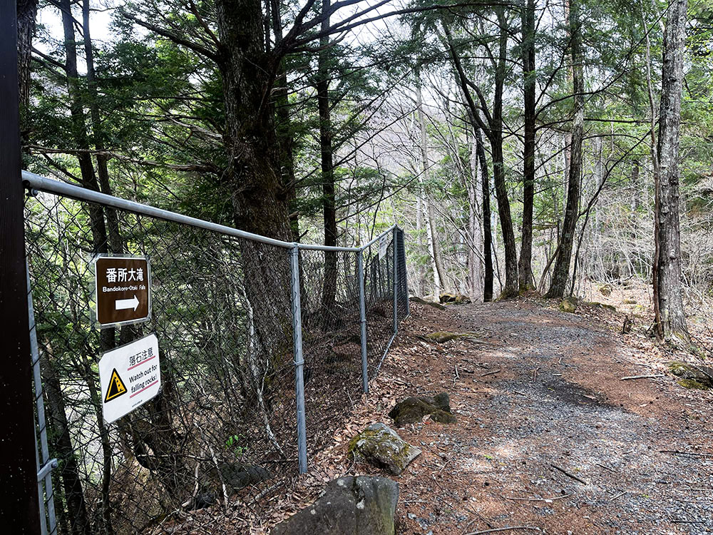 まずは案内板に従って番所大滝の展望台に向かうことにした。所要時間は下り10分、上り15分とある。