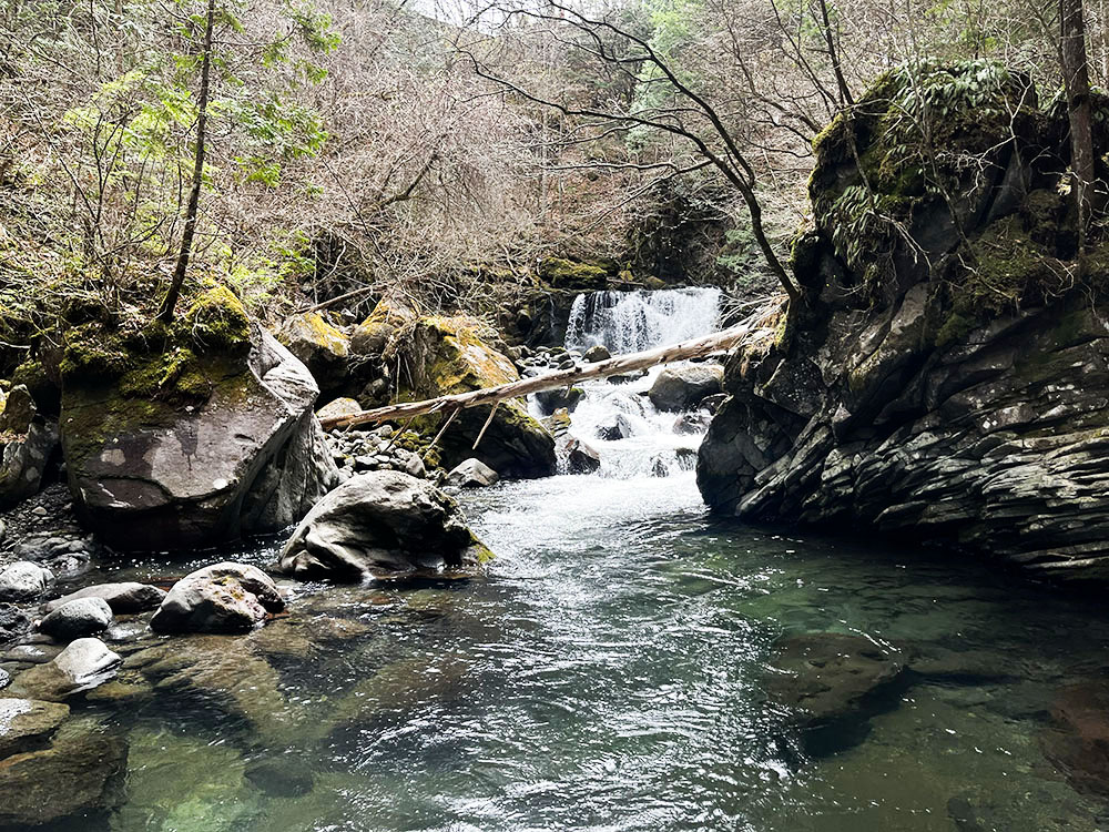 やがて現れたのは、大滝の荒々しさとは対照的な、清らかな流れを見せる番所小滝。