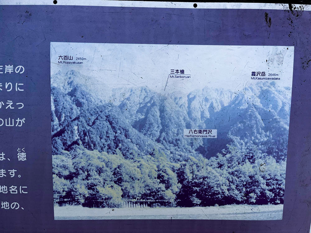 道端の案内板で、改めて仰ぎ見る峰々を確認する。