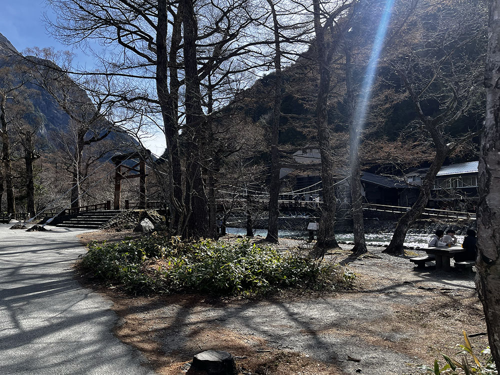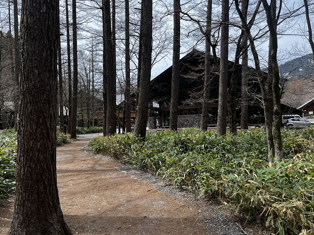 ここから上高地バスターミナルまでは、整備された道を歩いて約5分ほどの距離だ。