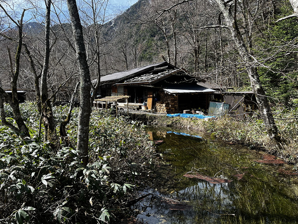 参道のすぐ近くには、上高地の歴史を語る上で欠かせない嘉門次小屋(かもんじごや)が佇んでいる。