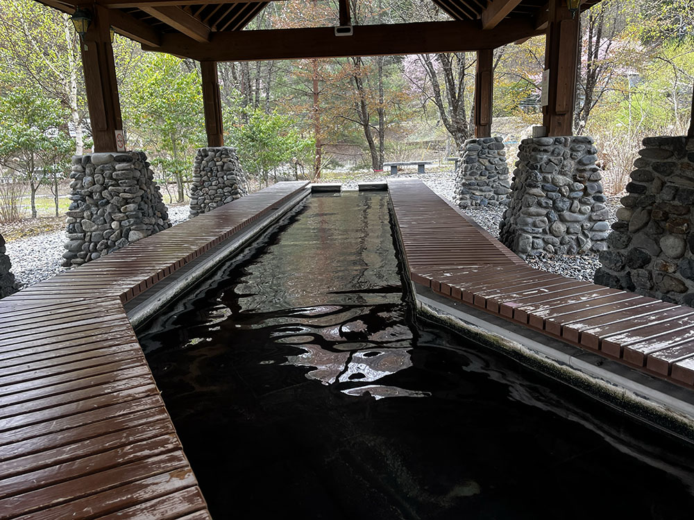30分ほどバスに揺られ、沢渡バスターミナルに帰還。今回の散策の本当の締めくくりは、第2駐車場のすぐ隣にある足湯だ。